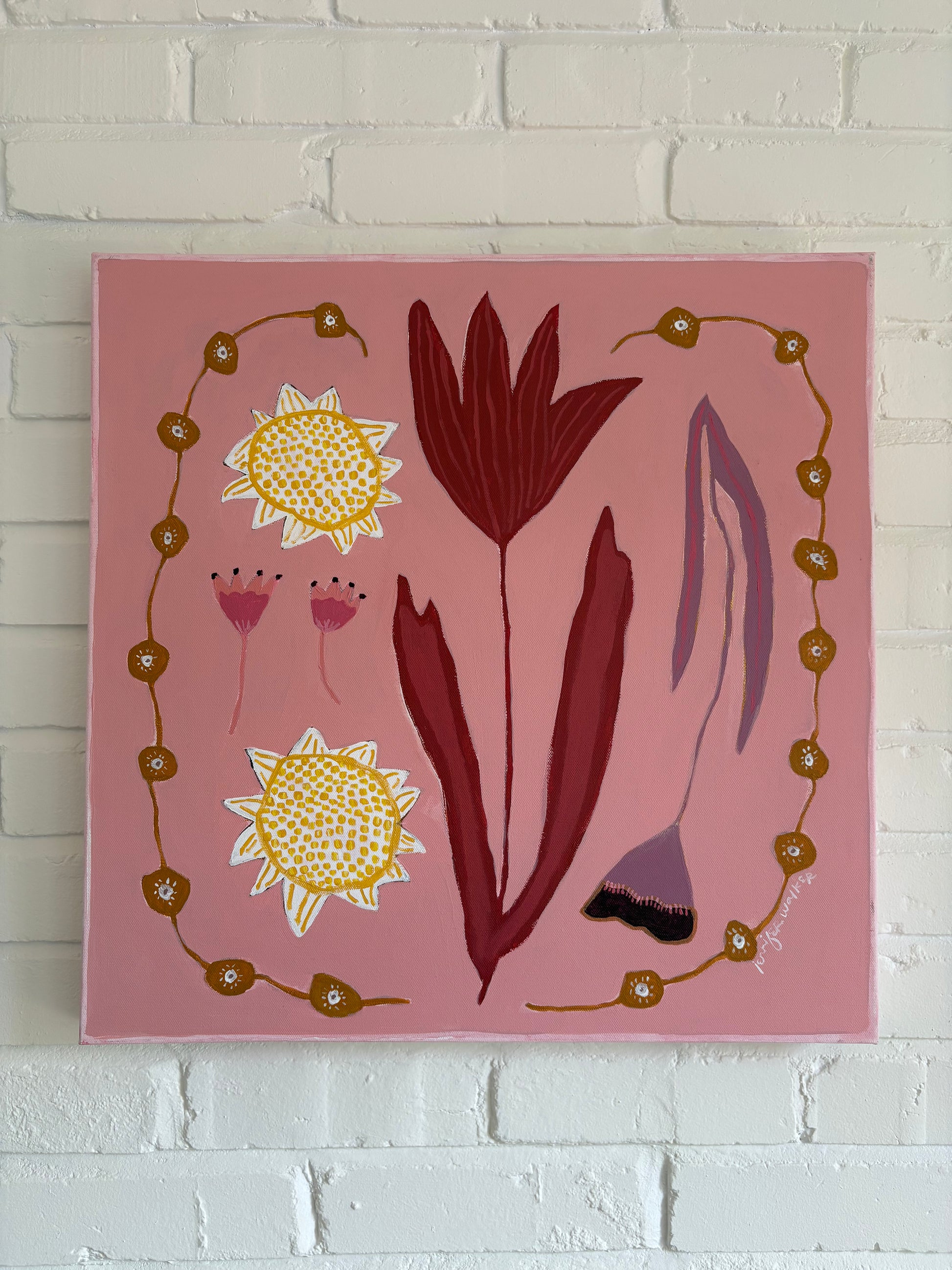 20"x20" acrylic painting on 1.5" gallery-wrapped canvas. Signed on front and back.