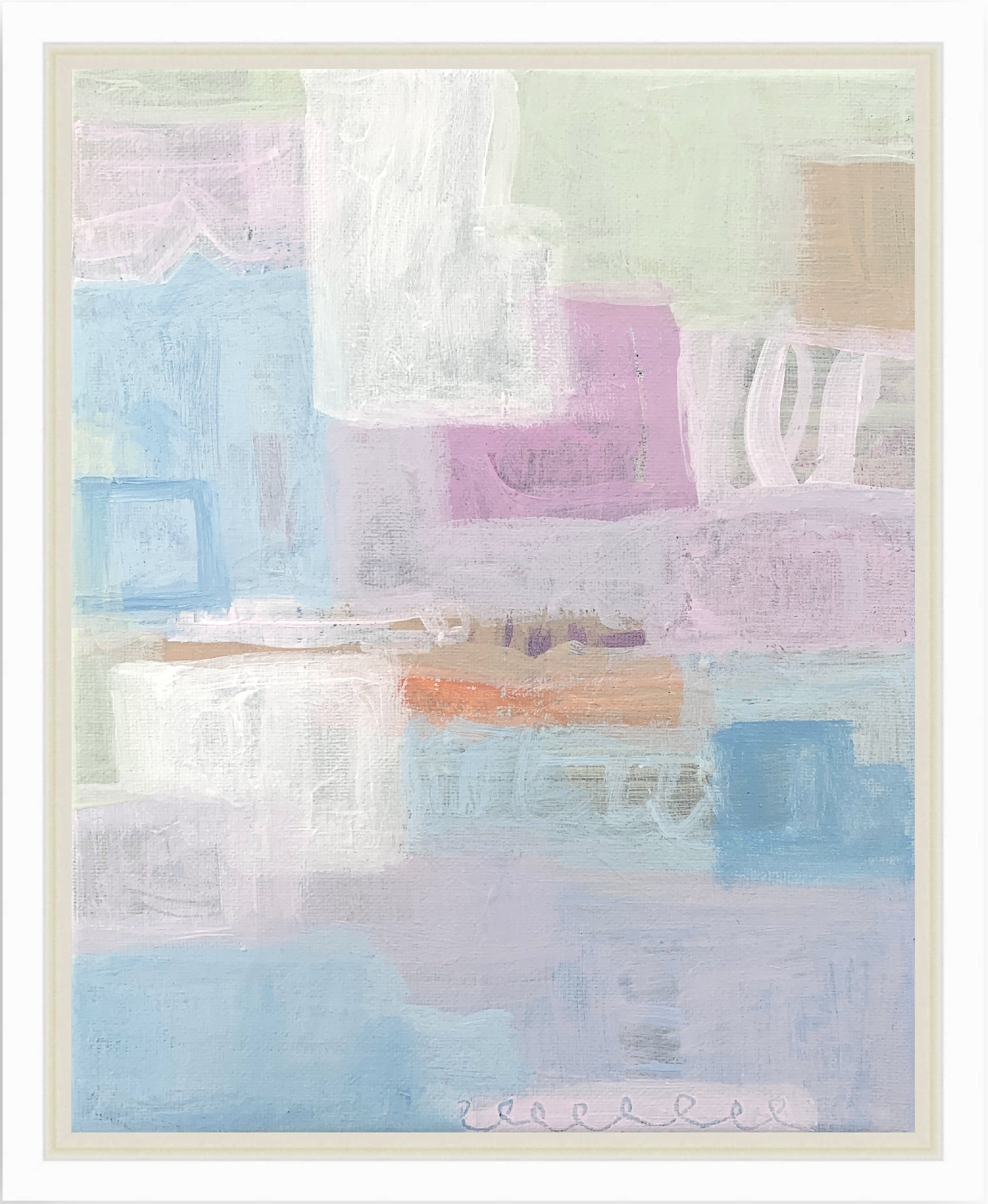 Acrylic on 1.5" gallery-wrapped stretched canvas in a white floater frame