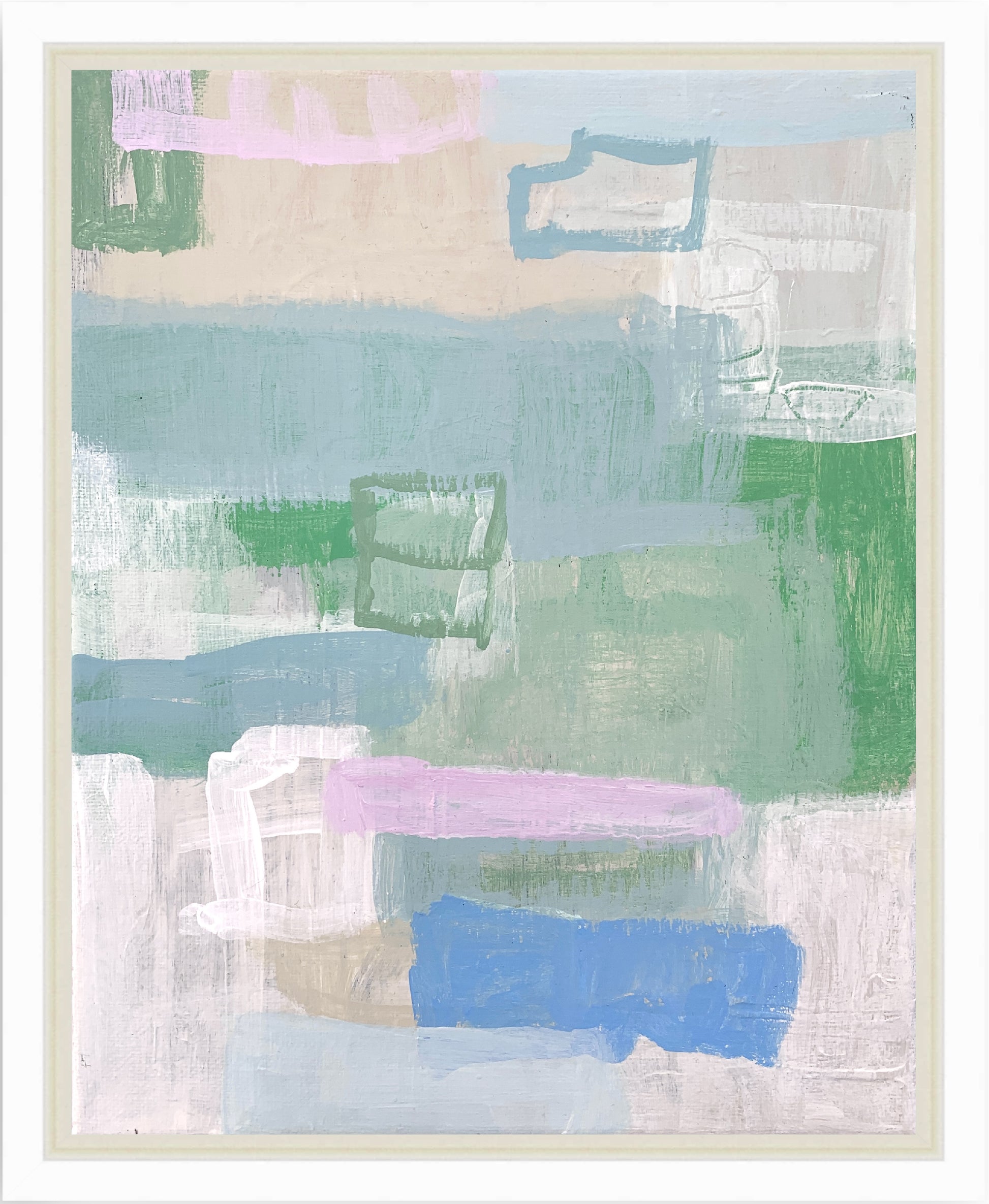 Acrylic on 1.5" gallery-wrapped stretched canvas in a white floater frame