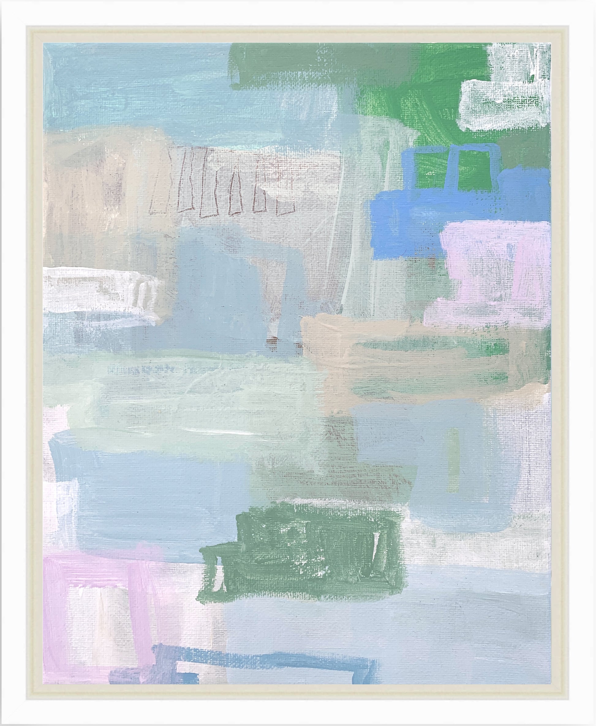 Acrylic on 1.5" gallery-wrapped stretched canvas in a white floater frame